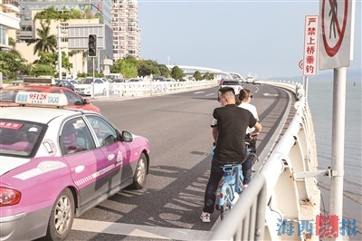 厦门演武大桥靠鹭江道一侧人车混行乱象引热议