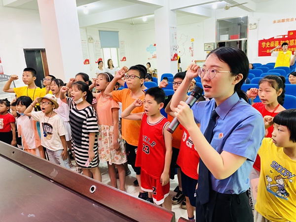 图三:区检察院干警带领孩子们重温少先队誓词。
