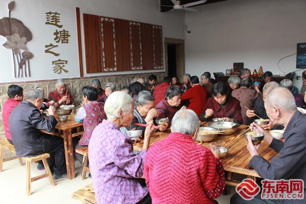 莲塘村“女儿节”精彩表演(莲塘村供图) 文化提质 孝老爱亲在村里成佳话 乡风文明的培育离不开“文化因子”的滋养。莲塘村文化资源丰富,具有耕读、尚武、孝亲、非遗、闽南民俗等传统“五韵文化”。 其中,孝老爱亲在莲塘村早已成为佳话。据了解,村党小组长林宝国无偿提供祖居作为场所,爱心企业家林良菽出资创办了“老人之家”,免费为村里70岁以上老人提供一日三餐及娱乐场所。 今年,是莲塘村“老人之家”开办的第十二个年头。如今,在莲塘村两个“老人之家”,可以看到百余位老人围坐在一起,边吃边聊,其乐融融。 另外,莲塘村最具特色的活动——莲塘村“女儿节”,主要目的也是传承、发扬孝亲文化,把女儿回娘家感恩行孝的习俗,培育成了文明进步的有益活动。 “老人之家和女儿节都办起来了,这让村里的孝亲文化更好地传承下来。”在莲塘村党委书记林华荣看来,这为村里营造了敬老尊老、邻里和谐的浓厚氛围。 莲塘村还不断挖掘宋江阵、漆线雕等传统文化和闽南习俗,培育村民的共同精神,成立教育促进会,开办全市首个“文武”社区书院,健全“四库”,统筹设置课程,由群众“点菜”,让莲塘书院成为村民的精神家园。