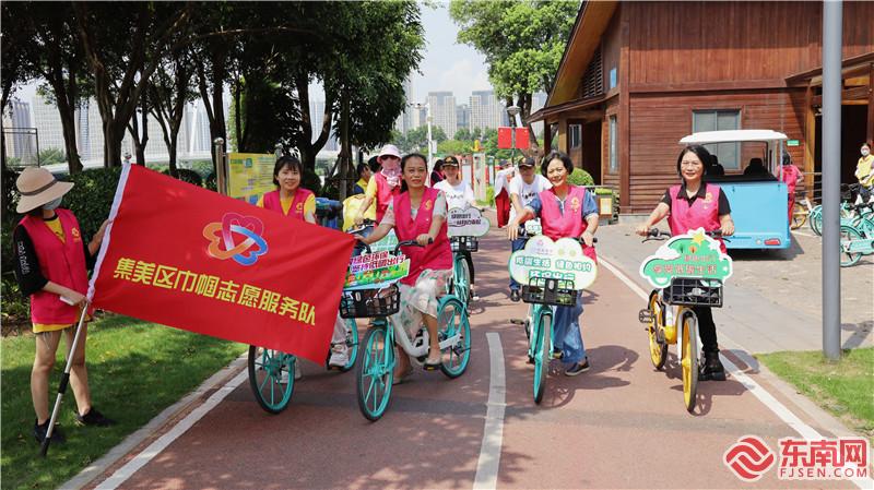 6月20日上午,厦门市集美区巾帼服务队启动仪式暨“低碳生活,绿色相约,环保出行”主题宣传活动在杏林湾畔举办。