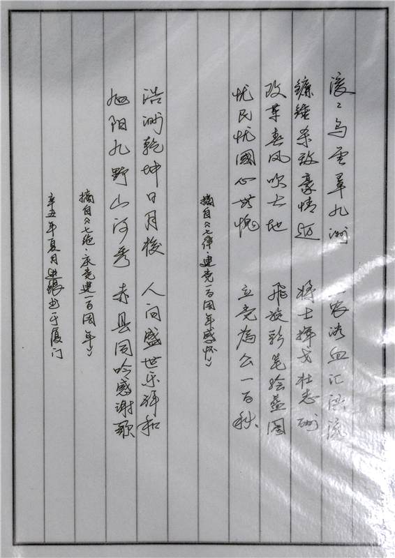 同安区卫生和计划生育监督所 王进银 书 七律·建党一百周年感怀 佚名 滚滚乌云罩九洲,工农浴血汇洪流; 镰锤杀敌豪情迈,将士挥戈壮志酬; 改革春风吹大地,飞旋彩笔绘蓝图; 忧民忧国心无愧,立党为公一百秋。 七绝·庆党建一百周年 佚名 浩渺乾坤日月梭,人间盛世乐祥和。 旭阳九野山河秀,赤县同吟感谢歌。 |