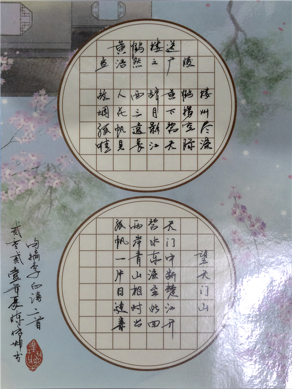 翔安区卫生和计划生育监督所 陈传炉 书 黄鹤楼送孟浩然之广陵 李白 故人西辞黄鹤楼,烟花三月下扬州。 孤帆远影碧空尽,唯见长江天际流。 望天门山 李白 天门中断楚江开,碧水东流至此回。 两岸青山相对出,孤帆一片日边来。 |