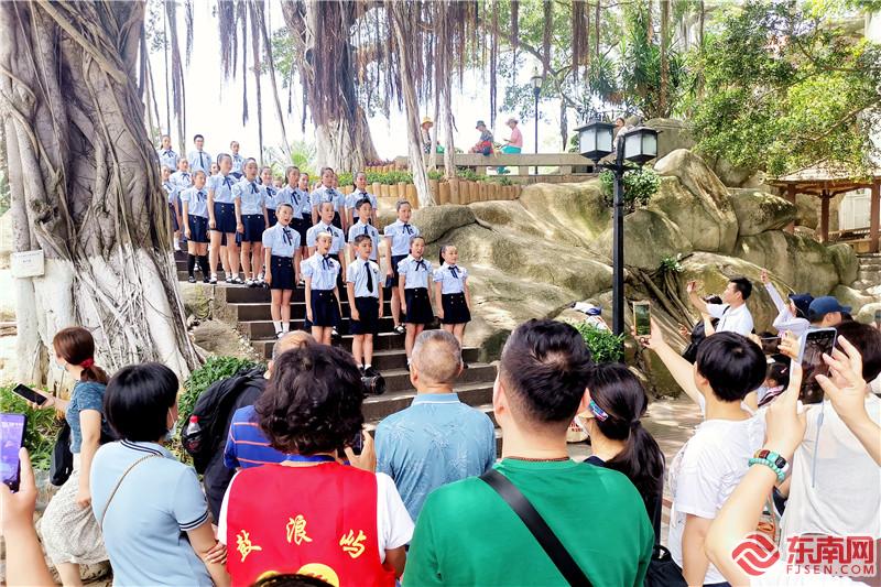 思明区青少年宫的孩子们现场歌唱,吸引了众多市民游客驻足聆听、拍照。东南网记者 卢超颖 摄