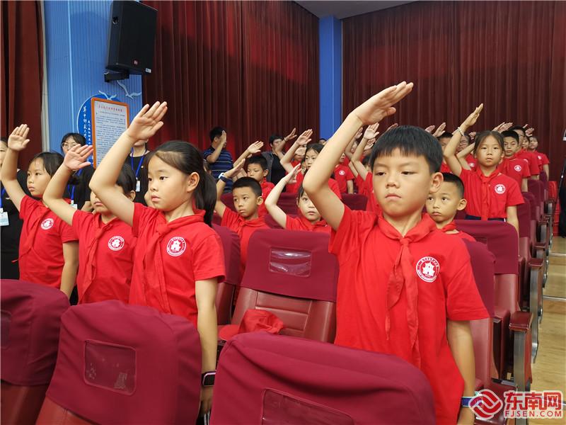 活动现场 东南网记者卢超颖 摄 东南网7月7日讯(本网记者 卢超颖 李奇)6日下午,厦门市海沧区“童心向党▪我向党旗敬个礼”主题队会暨“一片童心向党”动漫宣传片发布会在华中师范大学海沧附属小学博雅讲堂举行。 活动现场发布了海沧创新动漫宣传片《一片童心向党》,该片由中共厦门市海沧区委宣传部、区委文明办、区教育局和东南网联合制作推出,讲述了“厦门儿童救亡剧团”的小英雄们在中国共产党的领导下,在厦门海沧等地开展团结义演、宣传抗日的故事。特别是为了争取海外华侨支援祖国的抗战,小英雄们离开父母,从海沧出发,辗转到海外进行义演、募捐,开展抗日救亡的宣传工作。 回首厦门抗战时期那一段血与火的悲壮岁月,牢记“厦儿团”在小小年纪便为国奋战的英雄事迹——正是有无数革命先辈披荆斩棘、浴血奋战,才换来今天的盛世中华。如今,新时代的海沧青少年在革命先烈战斗过的地方学习、成长,接受红色洗礼、传承红色基因,让革命薪火代代相传。 当天,主题队会干货满满,海沧区小小红色宣讲员讲述了魁星楼和彭冲的故事,高潮迭起的舞蹈表演《为了解放》把现场的观众拉回了抗战年代。最后,孩子们齐声朗诵诗歌《青春中国》更是让人热血沸腾。 《为了解放》舞蹈表演讲述了海沧革命基点村囷瑶村毛穴广社的故事。在解放石甲头及厦鼓战役时,毛穴广村民大力支持解放军作战。全村把大小门板都拆给解放军做掩体。而在领回时,有的村民拿错门板,才造成毛穴广大多数老房子的门板不对称,这也成了村里一道特别的风景。 “排练这支舞时,同学们都很严肃。”五年级学生张梓馨表示,通过学习革命故事,可以体会到当时的情况有多么危急。除了排练这支舞,为庆祝中国共产党成立100周年,同学们还组织开展了朗诵、合唱活动,参加了红色夏令营。