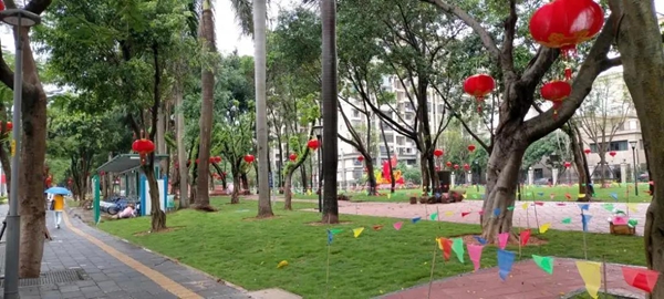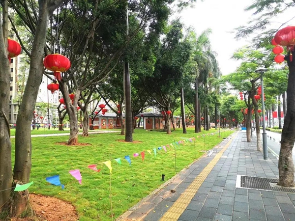 绿意盎然,各有千秋。位于金尚路的近邻公园,在原有绿化资源上增设休闲运动设施,形成可游、可观赏的社区公园。 五缘湾道西侧绿地,充分运用丰富的垂叶榕进行景观美化再升级,打造可供居民休闲活动、公交通勤者享受绿意的林荫等候点。