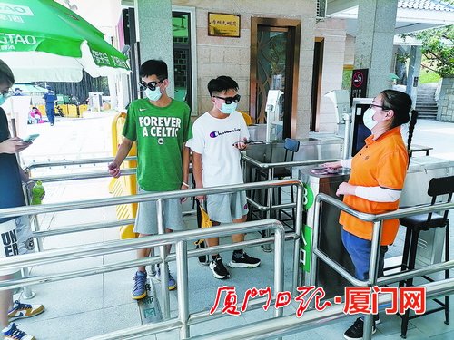植物园工作人员确认入园游客的健康码。(记者房舒摄) 厦门日报讯(记者 房舒 蒙婧)前天晚上,厦门市应对新冠肺炎疫情工作指挥部发布〔2021〕第1号通告,要求公共场所、交通工具、旅游景区等场所要加强疫情防控。昨日,记者走访植物园、商场、酒店等公共场所,并搭乘公交、BRT、地铁等公共交通,发现各场所疫情防控措施都相对到位,市民游客也十分自觉配合。 植物园 两道防线确认健康码 在园林植物园入口处,游客正在园方安保人员提醒下,出示健康绿码,购票入园。安保人员介绍,在入口闸机处,现场工作人员会再次确认入园游客的健康码。 植物园室内场馆照常开放,须佩戴口罩方可入内,门口亦有工作人员测量体温。 工作人员介绍说,植物园游客数上限为5万人左右,如园内游客数达上限的50%到75%,园方将会关闭室内场馆。 商场 为顾客提供免洗消毒液 在万象城的1号、3号、5号入口,工作人员均手持测温枪,提醒进入的顾客戴好口罩,并出示健康码。 在中华城一楼,商场主入口处,工作人员也手持测温枪,引导顾客测温并出示健康码;在中华城的家乐福超市入口处,保安拿出一次性手套,分发给需要的市民,“还有免洗消毒液,需要的可以取用,”这位保安说。 不过记者也留意到,有的商场的地下车库入口处无人员值守测温,存在漏洞。 |