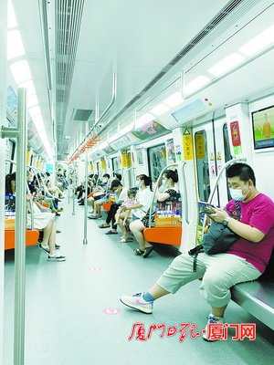 地铁1号线上,车内乘客自觉佩戴口罩。(记者蒙婧摄)