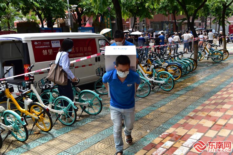 爱心志愿者将爱心物资送到湖滨四里采样点 东南网记者 刘学佳 摄