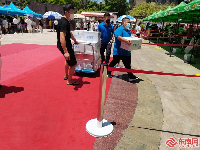 爱心志愿者将爱心物资送到松柏中学(高中部)采样点 (企业供图)