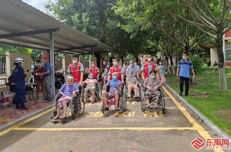 养老机构老人“组团”接种疫苗,志愿者贴心服务。周卫修 摄