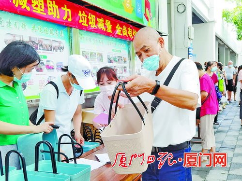 厦门江头街道免费发放菜篮子 助力减塑行动