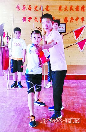江开良给孩子们纠正动作。 厦门日报讯(记者 邓宁)“文看车鼓弄,武看套宋江”,在同安区一直有着这种说法。48岁的江开良是“厦金宋江阵”市级非遗代表性传承人,他刚刚结束了一场为期50天的宋江阵夏令营。这并不是他第一次带徒弟,早在2012年,他就开始在汀溪镇中心小学义务教授孩子们宋江阵。九年来,他义务指导过的学生超过1000人次。 传承:给孩子们讲宋江阵的历史来源 “江教练,我们为什么要学宋江阵?”“这是祖祖辈辈留下来的艺术瑰宝,作为后代子孙不仅要学,还有发扬光大的责任!”这样的对话,经常出现在江开良的课堂上。课间休息时,江开良还喜欢给孩子们讲宋江阵的来源、戚继光的抗倭故事,以及宋江阵在闽台地区的世代传承。 江开良出生于同安汀溪镇造水村。7岁那年,江开良开始跟着村里的老师傅习练宋江阵。他的力气出奇的大,仿佛天生就是为宋江阵而生的。几年后,江开良就熟练掌握了长矛、青龙刀、大斧、单双刀、跳刀、单双剑、戟、钩镰枪、双铁鞭等宋江阵里的十几种兵器。18岁那年,他就能舞着四米长的丈二,带领整个队伍走完全部阵法。即便是现在,48岁的江开良依然能用三根手指单手完成十几个俯卧撑。 “宋江阵是两岸同胞共同的精神纽带和文化记忆,只要有学生愿意学,我就会一直教下去。”对于宋江阵的传承,江开良有着执念。今年初,江开良为宋江阵策划了一出舞台剧。将宋江阵的来源、演变等历史故事搬上荧幕,用艺术化的形式呈现出来,是他目前最迫切的期待。 教学:想学好宋江阵,就要吃得了苦 “想学好宋江阵,最基本的要求是吃得了苦。”江开良说。教授宋江阵、纠正孩子们错误动作时,江开良喜欢用“雕琢”两个字来形容。宋江阵的动作大多以弓步、马步为基础站姿。为了锻炼下肢力量及身体稳定性,练习者需要打下坚实的基本功,蹲马步、练站姿、比手势,一招一式,容不得半点马虎。为了形成肌肉记忆,往往一个姿势就得保持半个小时。 江开良的学生一般从三年级学起,一直延续到小学毕业。除了寒暑假之外,平时每周四和周六,各有一次课。“要长期坚持并非易事,既考验学生的毅力,又考验家长的耐心。”江开良说。 挑选什么样的学生加入宋江阵?江开良自有一套标准。“体能好,身体灵活性、协调性、柔韧性较好的孩子最适合。” 教学用的兵器,江开良从不采用改良版,他每堂课都手执真刀真枪上场。“平时训练用假把式,表演时再用真兵器,既无法让孩子们体会中华武术的精髓,表演也容易因不适应而出现差错。”但这不可避免地带来更大的压力,为了避免学生受伤,每次上课,江开良都小心翼翼。“每堂课教什么动作?如何教?一旦有人受伤,如何应急处置?”十多年来,江开良写下了几十本厚厚的教案。 今年暑假,江开良的宋江阵传承计划又迈进一大步。开学后,他将走进汀溪镇中心中学,教授初中生宋江阵。 |