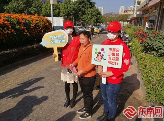 志愿者进行文明宣传(东南网记者 夏菁 摄)