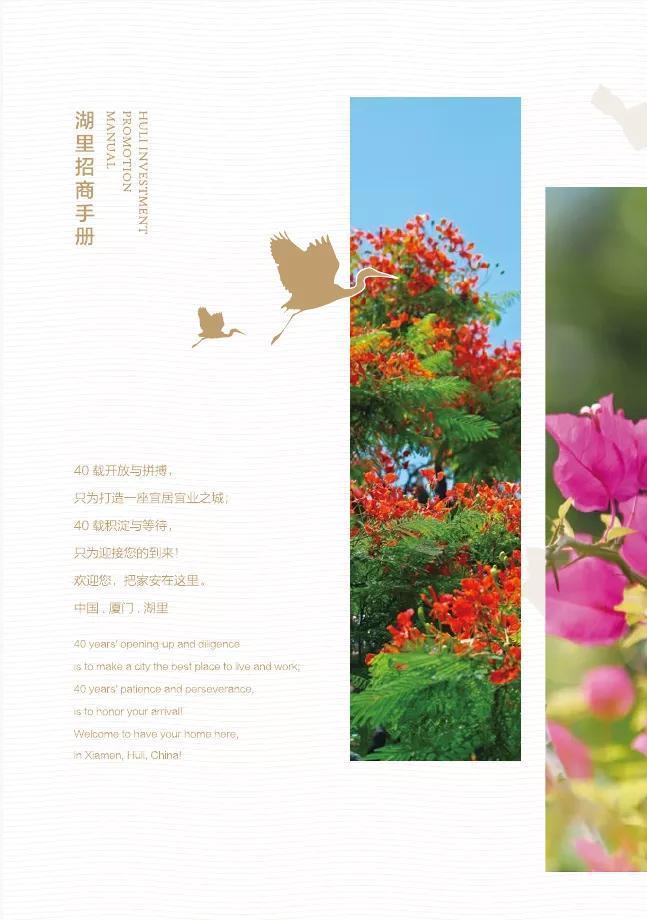 今天 厦门又一盛事拉开帷幕 9月8日至9月11日 第二十一届中国国际投资贸易洽谈会 盛幕开幕 盛事在即,湖里区全情投入 再一次发出招商引资“好声音”—— 湖里区2021版招商手册重磅出炉 湖里区最新版招商手册,详细介绍了湖里区大事记、经济发展、区情特点等城区概况,重点推介5+1个重点产业、两大国家级重大片区及多个重点招商空间,详尽解读湖里区总部政策、金融政策、园区政策、人才政策等优惠政策,让客商更好地走近湖里、了解湖里、爱上湖里。 40载开放与拼搏,全力打造一座宜居宜业之城;40载积淀与等待,湖里区已做好准备迎接您的到来。 接下来,一起打开 湖里区最新版招商手册 近距离感受湖里区的诚意和实力 |
