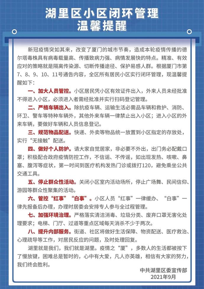 动起来,静下来!湖里区从快从严从实落实“四条通告”!