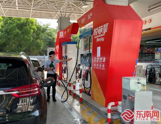 黄鸿武在黄厝油站为顾客加油,严格执行防疫工作标准。(中化福建石油供图)