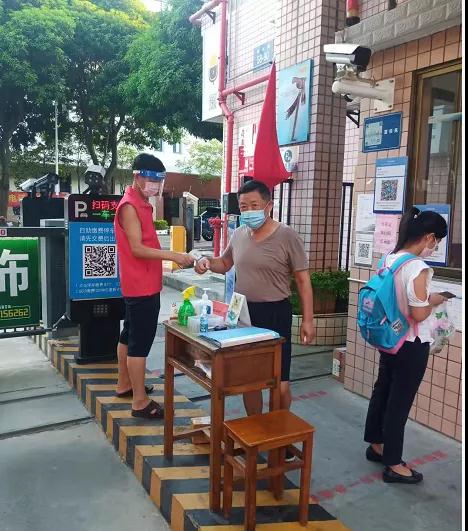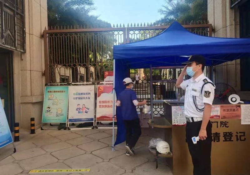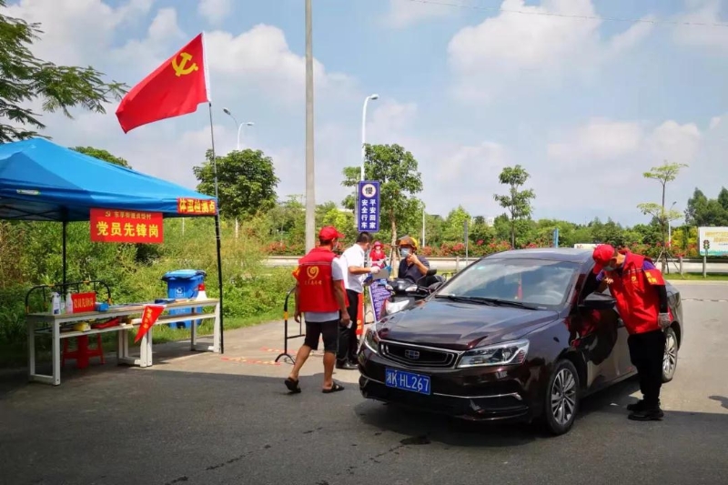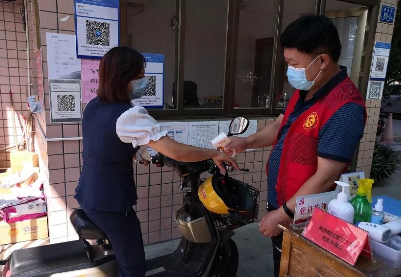 与城市小区防控不同,农村重在卡口管控。位于天竺山脚下的洪塘村赤土社,16人守护唯一的卡口,村民们表示安全感满满。 04党员+居民,组建抗疫小分队 嵩屿街道海达社区富佳苑小区 富佳苑小区党员、业委会与在职党员自发组织人员参与到富佳苑小区的疫情防控之中,党员与居民组成了10多人的抗疫小分队,每天轮流到小区门岗协助物业查看出入证、健康码、测量体温等。