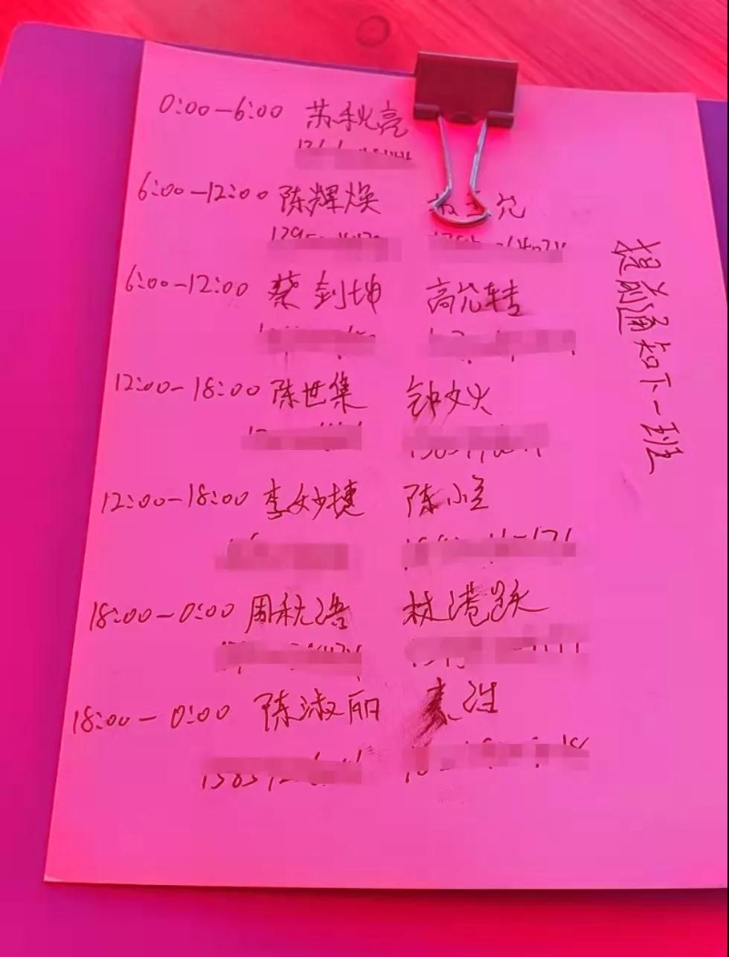 部分人员名单 这波疫情发生以来,党员陈世集、林港跃等带领赤土社村民志愿者一起守护唯一的卡口。他们总共16人,2人一个班,一个班6个小时。