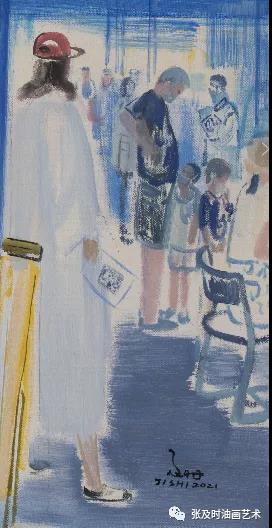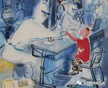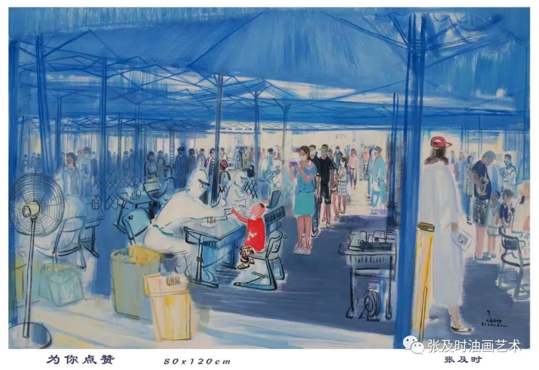 《为你点赞》尺寸:80×120cm 2021年 此刻,我们无暇顾及月夜星河 此刻,我们同心而动披星戴月 这是一场与时间速度的赛跑 一次与病毒近距离的较量 这是一呼百应,使命出击 医护人员的迎难而上,不计报酬 小朋友们的勇敢与坚强 彼此互相的鼓励与点赞 为这座城市增添了色彩与温暖