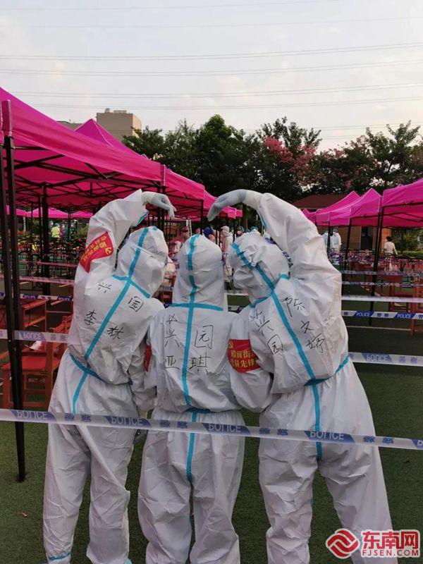 兴园社区的巾帼志愿者在同安工作间隙为自己加油。(兴园社区 供图) 星夜驰援同安 逆行身影令人动容 疫情就是命令,防控就是责任,21日凌晨,在接到通知召集人员奔赴同安支援核酸检测命令后,湖里区召集200余名党员干部职工星夜驰援同安。支援的队伍中,就有许多坚韧不拔的女性,逆行的背影熠熠生辉。 兴园社区“90后”陈文婷是两个幼儿园小朋友的妈妈,最小的孩子年仅2岁。凌晨一点,她接到通知后,2岁的孩子被吵醒,看到妈妈要离开,哭得撕心裂肺。“需要我的时候,我不能缺席。”带着家人的叮咛,她快速收拾好行李,离开了家。 “愿如一缕微光,光照我所在的小地方。”穿着整整8个小时的防护服,脱下口罩的那一刻,殿前街道北站社区的黄锦秀的脸都是被口罩勒出的伤痕。结束了第三轮核酸检测工作,忙到凌晨刚要入睡,黄锦秀便接到了一通“支援同安”的电话,她二话不说报了名,简单收拾行李就出发了。 同样没有休息的还有殿前街道翔鹭社区工作人员郑惠卿,已连续工作了15个小时。凌晨一点接到通知后,她连衣服都来不及收拾,就赶赴支援第一线。高温下身穿密不透风的防护服,被汗水浸湿的衣衫时刻都能拧出水来,“作战”一线,连续7小时没顾得上喝一口水,她实在支撑不住中暑了。 湖里街道的裴苗还是一位哺乳期的妈妈,在前三轮湖里街道全员核酸检测采样工作中,裴苗担负着送样员的工作,她跑前跑后,连日奋战在一线。得知支援同安新民镇的消息后,她顾不上休息、顾不上照顾年幼的孩子,还是选择义无反顾加入支援队伍。 |