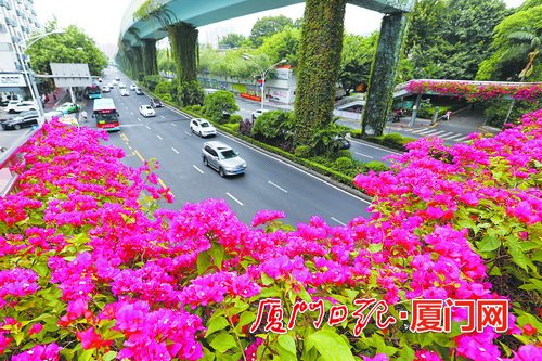 园博苑门前布置的“庆祝国庆 同心抗疫”景观。 厦门日报讯(文/记者 吴海奎 谢嘉迪 通讯员 薛 榕图/记者 王协云 摄)多彩的三角梅竞相绽放,火红的国旗迎风招展……厦门,这就是厦门,一座英雄而美丽的城市。又逢金秋“十一”,新中国成立72周年。经过全市干部群众众志成城、同心战疫,我市疫情防控工作取得了阶段性显著成效。 在这样一个重要节日和关键时刻,市市政园林局对城市重要节点绿化彩化点进行调整和再创作、增设主干道国庆主题图标,营造“庆祝国庆,同心抗疫”的浓厚社会氛围,给疫情中的人们带来温暖和力量,进一步坚定了我市干部群众奋力打赢疫情防控歼灭战的信心和决心。 一城春色半城花,万顷波涛拥海来。厦门是高颜值生态花园之城,四季有花,椰风海韵。连日来,市市政园林人保持高昂斗志持续奋战,全力做好疫情期间各项民生保障工作,并派出了11支突击队,400多位志愿者,深入同安区多个封控、管控区域,承担起多项急难险重任务,切实把实事办到疫情防控“最需要”、人民群众“真需要”的地方。 在此基础上,市市政园林人坚持战疫、本职两手抓,在国庆前夕,用鲜花美景营造节日氛围。看,这里美如画——在湖滨北路,竞相绽放的三角梅,簇拥着“庆祝国庆 同心抗疫”主题标语,激荡人心;在白鹭洲公园,红星闪耀在风帆上,扬帆起航;在道路两旁的路灯杆上,一面面火红的国旗,迎风招展,温暖人心;在街头转角处,一株株美丽异木棉花开争艳,温馨又浪漫。在高崎机场T4航站楼前,由绿植构成的“乐谱”气势磅礴,催人奋进。 有五星红旗的地方,就有信念的灯塔!风展红旗,花开盛世,美好的生活,正在厦门逐步回归,也必将回归。 莲前西路阳光百合人行天桥上盛开的三角梅,给国庆假期的鹭岛增添一份美丽的色彩。 在高崎机场T4航站楼前,由绿植构成的“乐谱”气势磅礴,催人奋进。 |