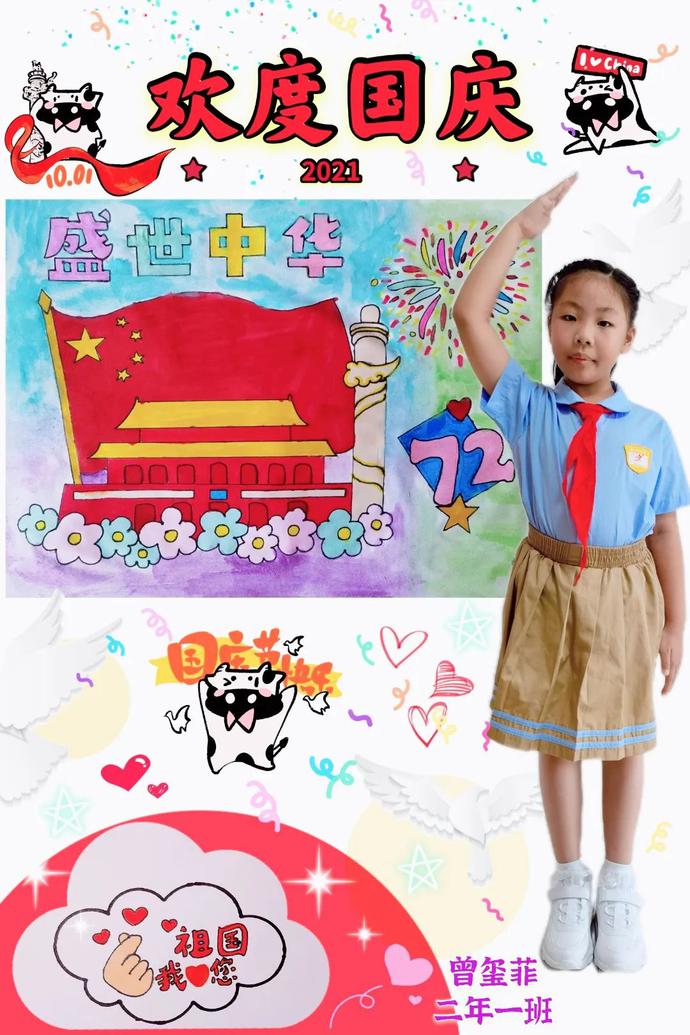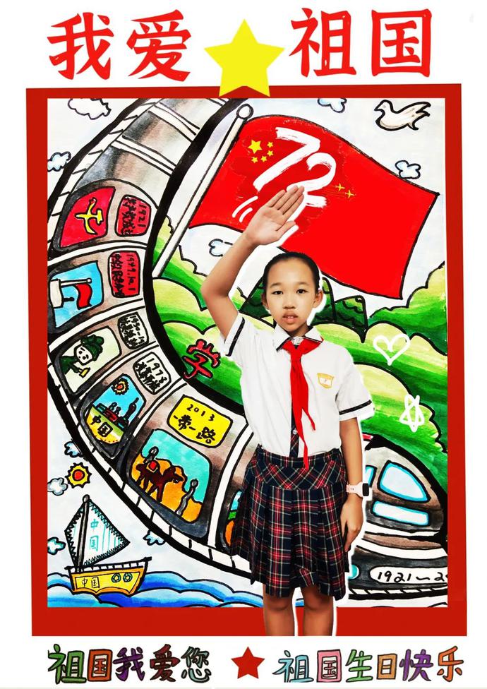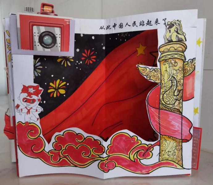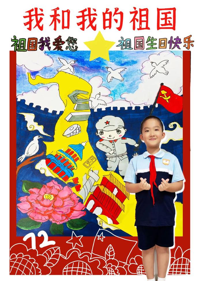 | e74c42e5eed04753abc9e75240c5ea53 有一种感动,叫“中国红” 有一种骄傲,叫“五星红旗” 有一种深情,叫“我爱您,中国” 爱国,始终是筑梦的底色 为庆祝新中国成立72周年 湖里区的小朋友们用自己的方式 表达对祖国的爱 画下了对祖国美好的祝愿 立体绘本《开国大典》 厦门金安教育集团金安校区五年级学生傅奕琳、蓝梓涵、陆宸,在林晓纤老师指导下,历时1个月共同创作了立体绘本《开国大典》。 绘本以结合《开国大典》历史原声的形式呈现。为了庆祝新中国成立72周年,小朋友们以1949年10月1日这个伟大的时刻,用一幅幅生动的画面展示着新中国成立以来,在中国共产党的领导下,中华民族从站起来、富起来到强起来的伟大飞跃,表达了学生们对祖国母亲的敬意。 ![]() ![]() 执五彩画笔 手绘祖国大美河山 向五星红旗敬队礼 用崇敬的心和创意画作合影 献礼祖国,向祖国真情告白 ![]() ![]()
