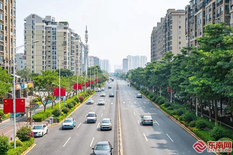湖里区城市主干道两侧灯杆上,挂满了鲜艳的五星红旗。(湖里区融媒体中心供图) 在金尚路、嘉禾路、仙岳路等25条城市主干道两侧灯杆上,挂满了鲜艳的五星红旗,形成一道庄严醒目的红旗长廊。