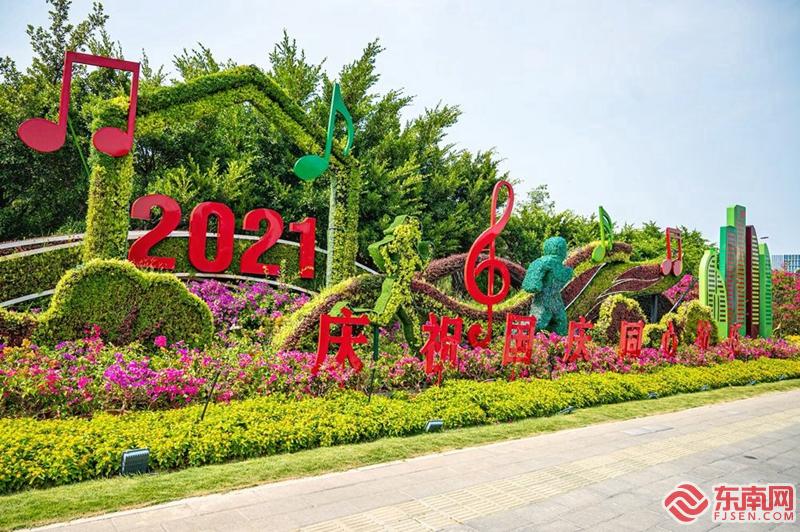 鲜花装点着湖里城区。(湖里区融媒体中心供图) 鲜花也装点着道路,与国旗相映成辉,铺就一道流光溢彩的光影。辖区重要道路交通岛、天桥等区域,采用玫红鸡冠花、超级一串红、大花香槟彩雀、夏堇等10余种花卉品种,将城区装扮得繁花似锦;在五缘湾湿地公园、忠仑公园、仙岳公园等景区,摆放三角梅共约1500盆,各种时令花卉约2000平米、6万多株。在机场、邮轮中心等重要区域,一处处特色绿雕、景观小品,更是美不胜收。