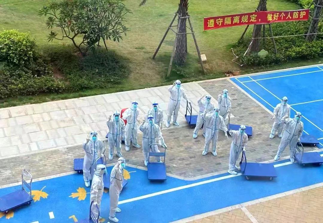 他们克服着隔离防护装备带来的不便,有条不紊地穿梭在隔离群众之间,周到细致地给隔离群众提供各种针对性的柔性服务。