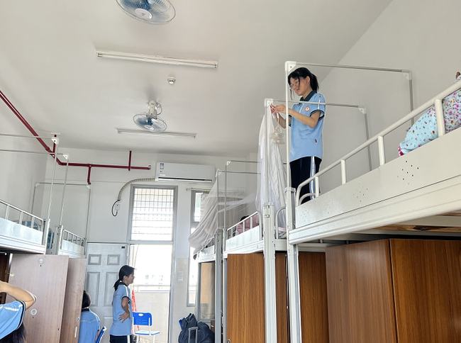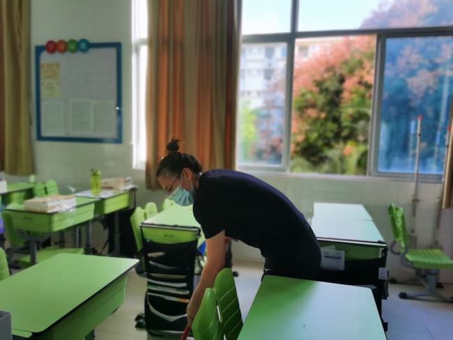高能!激动! 现场图来了! 第一件事→整理宿舍与课堂 从昨天开始 海沧实验中学的老师们 已开始整理学生宿舍和课堂了 马于玲段长说:打扫干净好学习