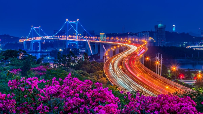 夜幕下的海沧大桥,宛如一条发光巨龙。(陈瑞坤 摄) 建设高素质高颜值国际一流海湾城区,全域生态旅游是其中重要的一环。海沧区早已先行先试,展开一系列生动的实践和探索,树立了文化新地标,打造出产业新高地,促进了文体新融合,连续三年游客接待量实现逆势上涨,年平均增速超过25.6%,成绩令人瞩目。 “厦门会客厅 山水新海沧”魅力十足,迎来八方来客。这其中蕴藏着海沧区全域生态旅游的新玩法和新魔法。 全域生态旅游是一盘大棋,海沧区通过“旅游+”的落子,打通全局,树立了文化新地标,打造出产业新高地,促进了文体新融合,“旅游+”是具体动作,“新”意识才是关键。因为有了创新意识,海沧区化身为高超的“魔术师”,“变”出的旅游产品让人眼花缭乱、目不暇接,赢得如潮好评。