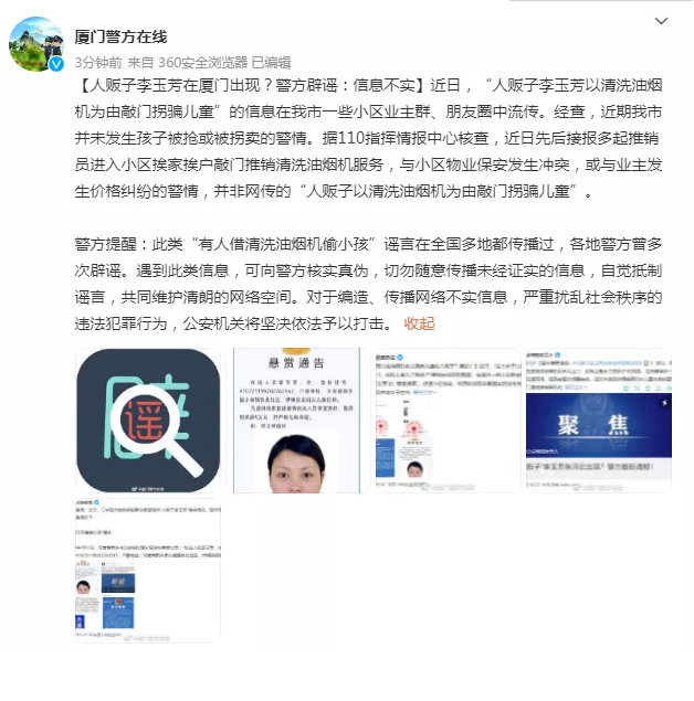 网传人贩子李玉芳在厦门出现 警方最新回应辟谣
