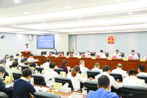 湖里区人大常委会运用专题询问方式,听取审议公共卫生有关情况报告,增强监督刚性。(湖里区人大供图) 厦门日报讯(记者 叶舒扬 通讯员 蒋惠琼 曾子宝)特区发祥地,两会进行时。昨天,湖里区第九届人民代表大会第一次会议第二次全体会议举行,听取区人大常委会主任黄炜做工作报告。 五年来,在区委的正确领导下,区八届人大常委会紧扣全区发展大局和区委中心工作,切实履行宪法和法律赋予的职责,各项工作取得了新进展、 新成效,圆满完成本届人大常委会目标任务。 【五年回顾】 政治站位新高度 召开区人民代表大会5次,常委会会议47次,主任会议64次,依法做出决议、决定55项,依法任免国家机关工作人员389人次——过去五年,区人大常委会始终把坚持和依靠党的领导作为最根本的政治原则和最重要的政治要求,贯穿于人大依法行权的全过程。 常委会把学习贯彻党的创新理论作为首要政治任务,扎实推进“两学一做”学习教育常态化制度化,深入开展“不忘初心、牢记使命”主题教育、党史学习教育和“再学习、再调研、再落实”活动,认真学习领会习近平总书记对福建、厦门工作的重要讲话重要指示批示精神,持续掀起习近平总书记在庆祝中国共产党成立100周年大会上的重要讲话精神和中央人大工作会议精神的学习热潮。 常委会坚持领导挂钩领衔的工作制度,全力保障区委中心工作顺利推进。尤其是在统筹推进疫情防控和经济社会发展中,运用专题询问方式,听取审议公共卫生有关情况报告,增强监督刚性;组织视察疾控中心建设,让监督更加精准;常委会领导和机关干部带头挂点疫情防控机场分流、定点酒店工作专班;走访“三高”企业、重点企业,帮助推动解决实际困难。 监督工作新成效 过去五年里,常委会紧扣全方位推动高质量发展超越,先后组织市、区人大代表集中视察检查107场次,听取和审议“一府两院”专项工作报告102项,开展专题调研113场次,不断推进辖区经济、政治、文化、社会和生态文明建设。 着力促进经济发展。适时做出“十三五”规划纲要中期调整,批准决定“十四五”规划和二〇三五年远景目标,推动辖区新旧动能转换、产业布局优化和片区综合开发,为全区经济社会高质量发展提供法治支撑。 着力提升城区品质。聚焦生态环境整治攻坚,连续5年专题审议区政府环境保护目标完成情况,开展水污染防治法联动执法检查,视察检查辖区水环境质量、河(湖)长制、黑臭水体整治情况,持续督察排海口污水综合治理情况。2018年7月,常委会以小区治理和垃圾分类为抓手,坚持规划和普法先行,依法决策监督,推进生态文明和城区建设的典型做法,得到充分肯定,《人民日报》、新华社等6家央媒作了深度宣传报道。 着力增进民生福祉。立足学有优教,重视公办学校和新开办中小学校建设,听取审议区政府关于学前教育、民办教育发展、公办校(园)建设和无证幼儿园监管工作情况等报告;立足病有良医,把重点医疗资源建设、民营医疗监管、分级诊疗服务、创建健康促进区建设和体医融合促进全民健康情况作为监督重点,积极为 “国家级健康促进区”建设出谋划策;立足老有颐养,组织视察老龄事业发展情况,听取和审议区养老服务体系建设工作报告,助推政府完善养老服务发展规划。 着力维护和谐稳定。聚力基层治理,综合运用审议议题、代表视察、议案督办、做出决定等方式,全力营造良法善治环境。