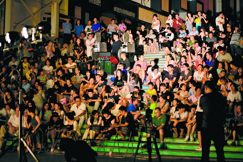 如今,湖里不少社区广场多了几分影视的气息——饭后散步,露天观影,逐渐成为市民生活的一部分。(湖里区文发办供图)