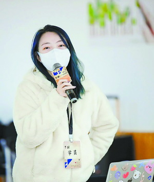 昨日,全国首个编剧全产业化特训班2021华语国际编剧论坛“神灯计划训练营“在湖里开营。图为学员发言,交流心得感想。(湖里区文发办供图)