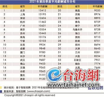 全国38城2021年第四季度企业招聘薪酬报告出炉 平均月薪9780元 厦门排在第12位