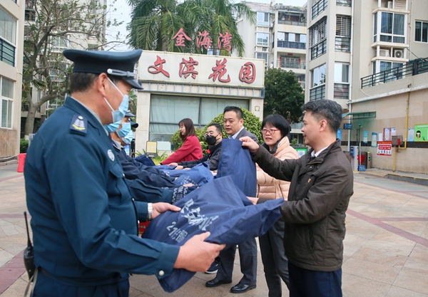 图二:杏林建设公司慰问一线员工。(杏林建设公司 供图) 当日,集美城发公司同步开展了“橙花暖冬”行动,为3500多名在户外起早摸黑工作的环卫、市政、园林、物业等一线员工送上热腾腾的姜茶、暖烘烘的暖贴等防寒物资。(记者 蔡鹏程 通讯员 裴露露 来源:集美报) |