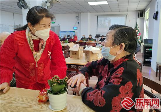志愿者与老人共植长寿花(集美银江路志愿服务驿站 供图)