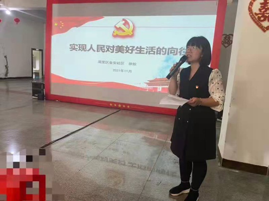 “这是一份必须用脚步去丈量的工作,也必须用笔触记录的工作。”徐姣将她在防控疫情一线所见所闻写成一个个感人故事,通过微信公众号传递给居民。 “这几年我看到社区工作越来越细,事情越来越多,越来越繁琐,陪家人的时间越来越少,但大家都还默默坚持和坚守。比如在疫情防控中,为了筛查溯源数据,大家吃睡住都在社区,这种爱岗敬业、主动奉献的精神,都是一个个大爱的故事。” 构建金安社区文化立体传播体系,党员干部的理论学习和党的政策宣传也是一个重要环节。