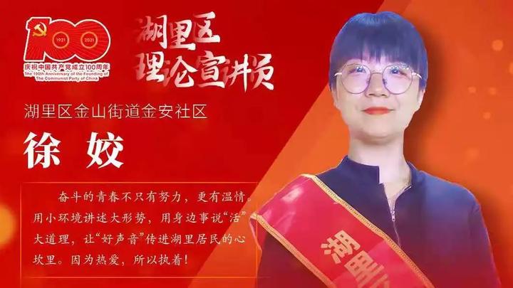 近年来,湖里区大力加强新思想学习,不断探索理论宣讲大众化、对象化、分众化模式,打通基层宣讲“最后一百米”,助力新思想“飞入寻常百姓家”,2021年获评全市理论宣讲工作“先进集体”,在宣讲队伍中建立临时党支部做法被全国党史办简报刊发,参加全市理论宣讲轻骑兵比赛成绩优异,主要经验做法被《厦门宣传》刊发。 在这些亮眼的成绩背后,有一群理论宣讲员,他们扎根基层,用饱满的热情、通俗的语言、翔实的数据,传递党中央声音,讲述湖里故事,共同画出“同心圆”,激昂唱响“主旋律”。湖里头条特推出“扎根基层、立足岗位”优秀宣讲员系列宣传,让我们共同领略他们的风采! 引言:“这是一份必须用脚步去丈量的工作,也必须用笔触记录的工作。”徐姣将她在防控疫情一线的所见所闻写成一个个感人故事,通过微信公众号传递给居民。