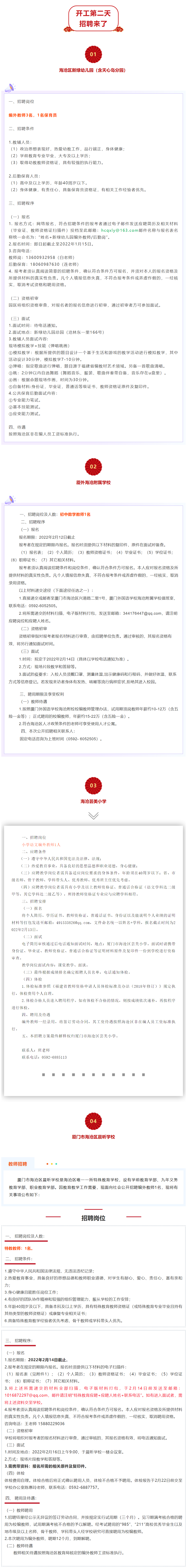 海沧4校招聘教师 招聘岗位细则现对外公布