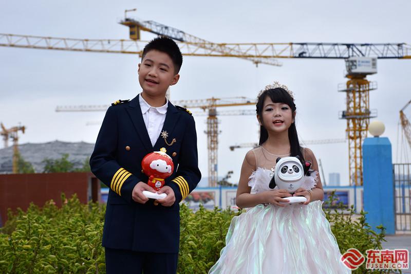小朋友们手持“冰墩墩”“雪容融”参与快闪录制(翔安区委宣传部 供图)