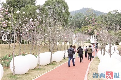 天竺山的玉兰花迎风摇曳,清冷高洁。记者 王晓萍 摄 海西晨报讯(记者 王晓萍)寒意未尽,暖色刚起,海沧不少花树开花,将初春美景点缀。昨日,记者走访天竺山森林公园和大屏山郊野公园看到,天竺山的玉兰花枝头绽放,大屏山的樱花亦花开簇簇,各色景致引人流连。 “翠条多力引风长,点破银花玉雪香。”天竺山的玉兰花迎春渐次开放,吸引不少市民游客前来登山赏花。由东门进入天竺山森林公园,没几步便可抵达公园的玉兰幽谷,这里正是天竺山的玉兰花树种植集中地。一眼望去,已有不少玉兰花迎风绽放,几无绿叶的枝干上开出大轮花朵,迎风摇曳,清冷高洁。昨日虽是工作日,午后仍有不少市民游客前来欣赏玉兰花,他们走在步道上赏花,不时驻足拿出手机定格枝头美景。 据了解,天竺山森林公园共有1000多株玉兰花树,主要为白玉兰和紫玉兰,这些花树将于本月底迎来盛花期。 坐落在海沧大桥旁的大屏山郊野公园则迎来了樱花的花期,昨日,记者来到公园的樱花谷,看到部分花树已经开花,小小的紫红色花朵开满花枝,远观犹如一团团紫红色的云雾。昨日上午,亦有市民游客前来踏青,盛花的花树下不时可见他们合影留念。 “大屏山郊野公园目前盛开的樱花品种是福建山樱花,将于2月末迎来盛花期。”厦门海沧城建园林有限公司相关负责人介绍,今年春季的气温较低,花期相较往年将会更长些。 漫步樱花谷,虽有花树花开满枝,但亦有花树绿叶点缀不见花苞。记者了解到,大屏山郊野公园种植有2000多株樱花,除了福建山樱花还有小乔樱花和广州樱,它们则要到3月末才迎来花期。 “春景园林赏花木。”若天气晴好时得闲,不妨前去登山赏花,在山林间纵享美好春色。 |