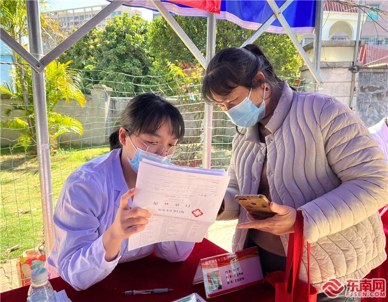 活动现场,医生查看患者病例。东南网记者 李霖 摄