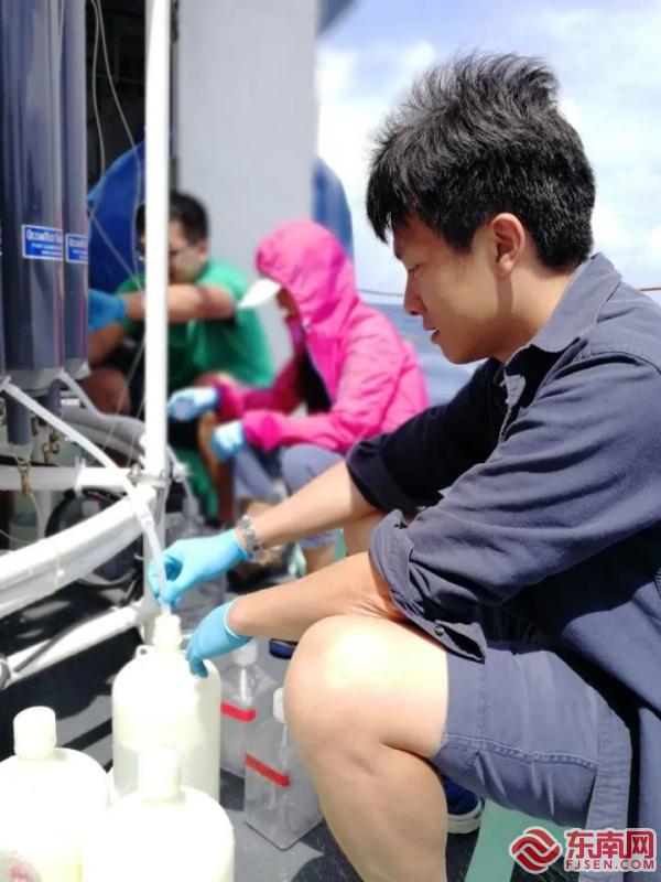 史大林在“嘉庚”号上(受访者供图) “我们从2013年就开始做海洋现场观测的工作了。”史大林表示,“现场观测与实验室研究相辅相成,是我们团队的传统。”秉持着这样的研究理念,多年来,团队始终坚持去到现场开展生物固氮的研究。 为此,团队学生里的“老大哥”温作柱前后参与了十几个科考航次,共计在海上待了300多天。“我有连续三年的生日都是在海上过的,也在海上给很多人过过生日。”他笑着说。 |