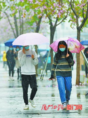 昨日厦门下起绵绵春雨,行人撑伞出行。(厦门日报记者蔡茂祥 摄) 厦门日报讯(记者 吴晓菁)昨日市民在迷蒙的雨雾中又一次经历了湿冷。今天厦门还将有明显降雨,能见度低,市民出行要注意交通安全。 受冷暖空气的共同影响,厦门昨日普降小到中雨,西北部山区雨势较大。白天冷空气影响减弱,在阴雨的笼罩下,气温依旧低迷。到了傍晚,雨水渐止,气温逐渐回升,厦门国家基本气象站的最高气温出现在21:33,为19.3℃。 由于空气湿度居高不下,全天厦门的相对湿度为饱和状态,气象部门连续发布大雾黄色预警信号。到了昨日傍晚,暖湿气流裹挟着充沛的水汽强势来袭,整座城市雾气氤氲,能见度很差,局部地区出现了能见度小于100米的大雾,室内出现轻度“回南天”现象。预计今天“回南天”还将继续,直至晚上新一股冷空气的到来。 今天,冷暖空气交汇产生的强降雨带将移至厦门上空,气象部门昨日继续发布暴雨四级预警。根据预测,今天白天雨势增大,白天到夜间有大雨到暴雨,24小时累计面雨量可达40毫米至60毫米,局部超过80毫米,降水时局地伴有强雷电、7-9级短时大风、短时强降水等强对流天气。这样的雨雾天气,厦门及沿海能见度较低,市民出行要谨慎小心。 明天白天起雨势减弱,以阵雨或雷阵雨为主。不过,29日至30日,厦门又将出现一次较强降水过程。 受冷空气影响,今起三天,厦门及海上风力持续较大,最大风力时段出现在27日夜间至28日,预计市区东北风最大可达5-6级、阵风7-8级。 气温方面,今天是冷空气影响的间歇期,最高温为24℃。受冷空气影响,明后两天气温下滑,预计28日最低温为13℃。29日开始,暖湿气流活跃,气温再度上升。 厦门天气 今天 阵雨或雷阵雨转大雨,有雾或轻雾 18℃~24℃ 明天 大雨转阵雨或雷阵雨 16℃~20℃ 后天 阴天有阵雨或雷阵雨 13℃~17℃ 数据来源: 厦门气象 微信公众号 省内城市今日天气 福州 中雨转小雨 15℃-25℃ 宁德 中雨转小雨 15℃-25℃ 莆田 大雨转中雨 15℃-25℃ 泉州 大雨转中雨 15℃-26℃ 漳州 大雨转中雨 17℃-25℃ 龙岩 中雨转小雨 16℃-25℃ 三明 中雨转小雨 14℃-24℃ 南平 小雨 15℃-24℃ 数据来源:中国天气网 海洋预报 高潮时:06时19分和18时03分 低潮时:12时24分 表层水温:16.5℃ 至19.5℃ 厦门岛南部海域浪高: 0.7米至 1.2米 轻浪 厦门海洋环境预报台发布 |