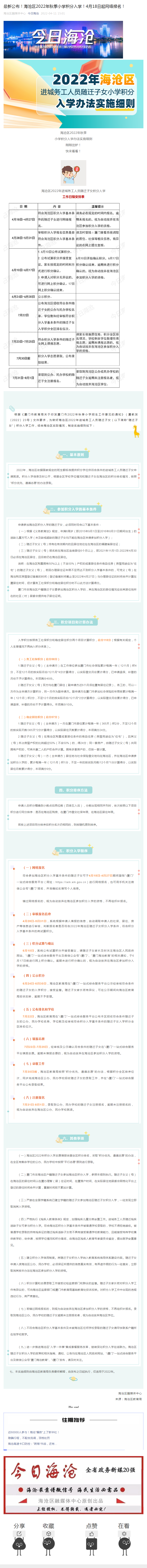 海沧区2022年秋季小学积分入学 4月18日起网络报名
