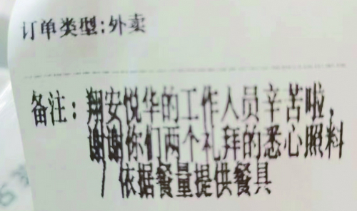 隔离人员在外卖单上的留言。 李毓琳 摄 厦门晚报讯(文/记者 戴舒静 通讯员 林瑞声 叶晓菲 图/李毓琳)“感谢你们的守护,让我们在隔离期间有一个安心、舒心、开心的环境”“辛苦啦,谢谢你们两个礼拜的悉心照料”……最近,翔安洋唐三期隔离点和翔安悦华酒店(入境隔离酒店)专班组工作人员,陆续收到这样暖心的感谢信和留言,一起送来的还有饱含爱心的外卖饮料。 疫情无情,翔安有爱。这一个个暖心的瞬间,正是翔安区委、区政府努力服务隔离人员的生动写照。 真心感谢 “谢谢你们的悉心照料,你们辛苦啦” 4月9日晚上,洋唐三期封控点B区工作人员收到封控点医学留观人员狄先生的感谢信,狄先生的真情流露深深打动了他们。 “这位狄先生是货运司机,他的行程轨迹曾到过泉州,根据疫情防控要求,需要进行集中医学观察。因为年龄比较大,加上对环境不熟悉、他对隔离比较抵触,拒绝工作人员提供的各项服务。”专班组组长刘勇军说,“我们耐心开导他,跟他聊生活、聊孙子,最终取得了他的信任。后来他卸下了心理防备,按照要求隔离,也能好好吃饭了。解除隔离后,他第一时间手写了这封感谢信,让我们感到很意外”。 近日,翔安悦华酒店专班组工作人员收到外卖小哥送来的30多杯杨枝甘露。他们正好奇这些饮料是谁点的,忽然发现外卖单上的备注上写着:“翔安悦华的工作人员辛苦啦,谢谢你们两个礼拜的悉心照料。”看到电话和姓氏,他们感到很暖心:原来这是当天一名刚解除隔离的澳籍女华人给他们点的。 真诚服务 “希望你们住得舒心,争取早日回家” “只有用心地将一些看似很小的事情做好,才能让大家在这个临时的‘家’里安心地生活,共同战胜疫情。”悦华隔离酒店专班组组长吴国新说,让所有隔离人员在隔离期间住得舒心、早日回家,是翔安所有疫情防控人员努力的目标。 在悦华隔离酒店,为了让来自不同国家和地区的抵厦人员安心地接受隔离,专班组协同酒店方仔细研究了各地的饮食习惯,在这些人员入住的14天里,他们精心准备了14种不重复的套餐,有西餐、日本料理、韩国料理等。还配备了会说日语、韩语、英语等语种的工作人员,24小时为隔离人员提供服务。 在洋唐三期隔离点,专班组工作人员为老人送药,为女性送卫生巾,为产妇送奶粉、尿布,为回族朋友开设清真绿色点餐通道…… 除了做好精准服务,各专班组围绕翔安区委、区政府提出的疫情防控安全工作要求,建立起一套规范化管理制度,从严从实落实各个环节的管理工作,确保隔离酒店和场所防控工作的稳定有序。 “只有做好规划化管理,才能确保隔离场所的安全,最终确保隔离对象的安全。”翔安区文化和旅游局主要负责人说,隔离酒店和场所是疫情防控工作的重要一环,责任重大。翔安区始终坚持“人民至上、生命至上”原则,把安全放在第一位,以更严举措、更高标准落实落细隔离防控措施,切实筑牢隔离场所防控坚固防线,坚决打赢疫情防控歼灭战。 |