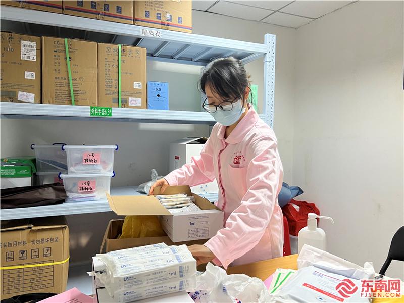 杏林街道社区卫生服务中心护士李翠平为次日下社区给老人接种新冠疫苗准备物资。东南网记者 李霖 摄 疫苗接种 坚守岗位“齐”发力 “建立全民免疫,需要您的一臂之力”“防控战疫要打赢,接种疫苗我先行”……在集美区杏林文体中心疫苗接种点LED大屏上,滚动播放着宣传标语、注意事项等。 与此同时,预检处医生仔细询问接种群众病史、过敏史;登记处医生为群众进行接种登记;接种台上,护士为群众接种疫苗,告知注意事项,志愿者从旁协助……各岗位工作人员齐心协力,保障疫苗接种高效有序。 现场,如同屏幕上的文字一样忙碌不停,穿梭在各个接种台的瘦小身影,是杏林街道社区卫生服务中心护士李翠平。开打前,提早至少半小时准备疫苗、物资;接种结束后,花费数小时清点物资,上报异常数据等。李翠平说,这是疫苗管理班的日常。 实际上,每一个疫苗接种点,无论是面对面为接种群众提供服务,还是在不容易看到的角落里默默付出,每个岗位都是疫苗接种工作不可或缺一环。“一个疫苗接种点的顺利运转,离不开所有岗位的密切配合。”杏林街道社区卫生服务中心副主任孙沛表示。 孙沛说,除了现场维持秩序的社区工作者、志愿者,以医务人员为例,就包括预检、登记、接种、疫苗管理、应急保障、现场督导、院感管理、后勤保障八个岗位,至少十几人,而疫苗接种最高峰时,人数还要翻番。除了来自集美区属各医疗卫生机构的医务人员,还有厦门二院医生驻守医疗保障区,随时应对突发状况。 据统计,今年3月以来,杏林文体中心疫苗接种点单日最高接种量约4900剂。值得一提的是,通过加强宣传科普,开设绿色通道,开辟下社区疫苗接种专场服务等举措,目前该接种点60岁以上老年人接种率正在稳步上升。
