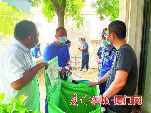 海沧开展生活垃圾分类检查行动 执法人员指导商家准确分类